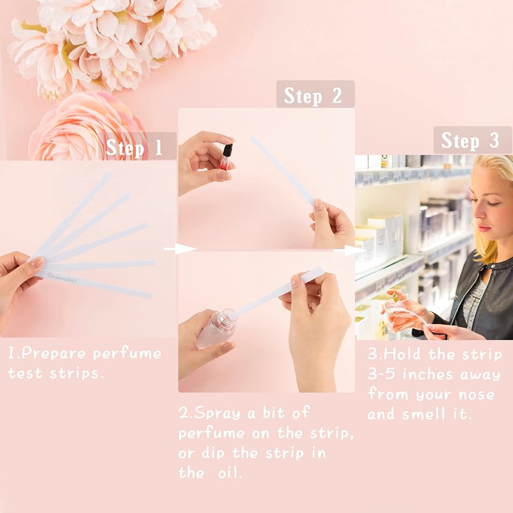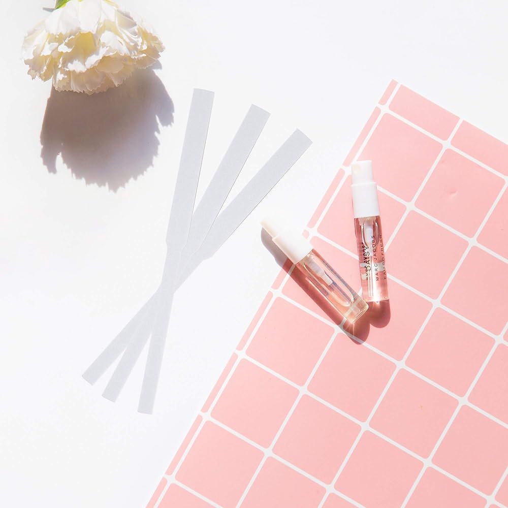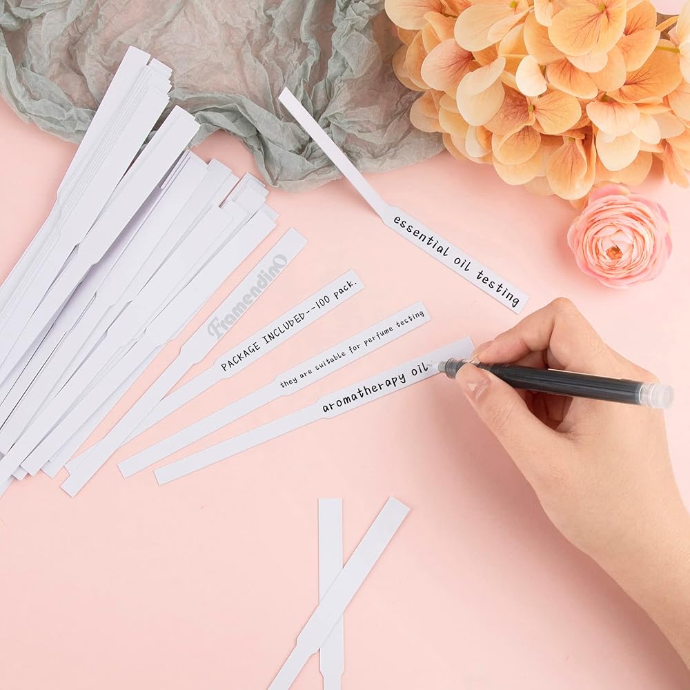 مقاس المنتج - يبلغ قياس شريط اختبار العطر 5 × 0.5 انش (الطول × العرض).