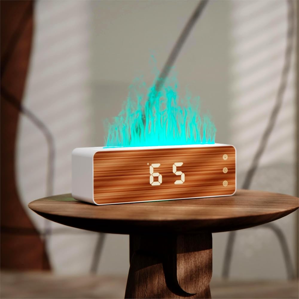 [Over 15cm Flame with1600w Color Adjustable] We used new airflow design greatly increases the flame height, This Flame Diffiuser maximum height of the flame can exceed 15cm. (Compared to similar models with only 5cm). This flame aroma therapy diffuser built-in 3 colors (ice blue & flame red & Night light), And also has 1600w different flame colors can be set freely, which is perfect for ultrasonic aromatherapy, collects light and mist to create a realistic flame effect.