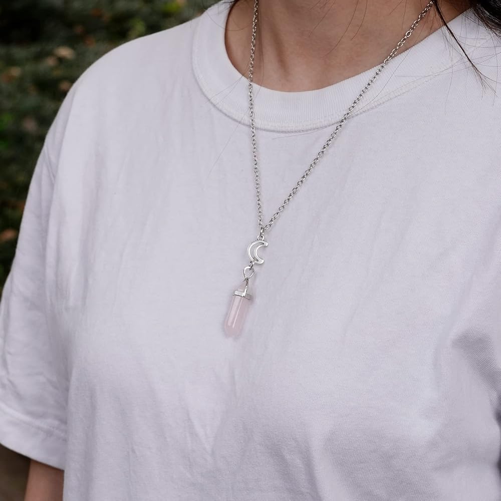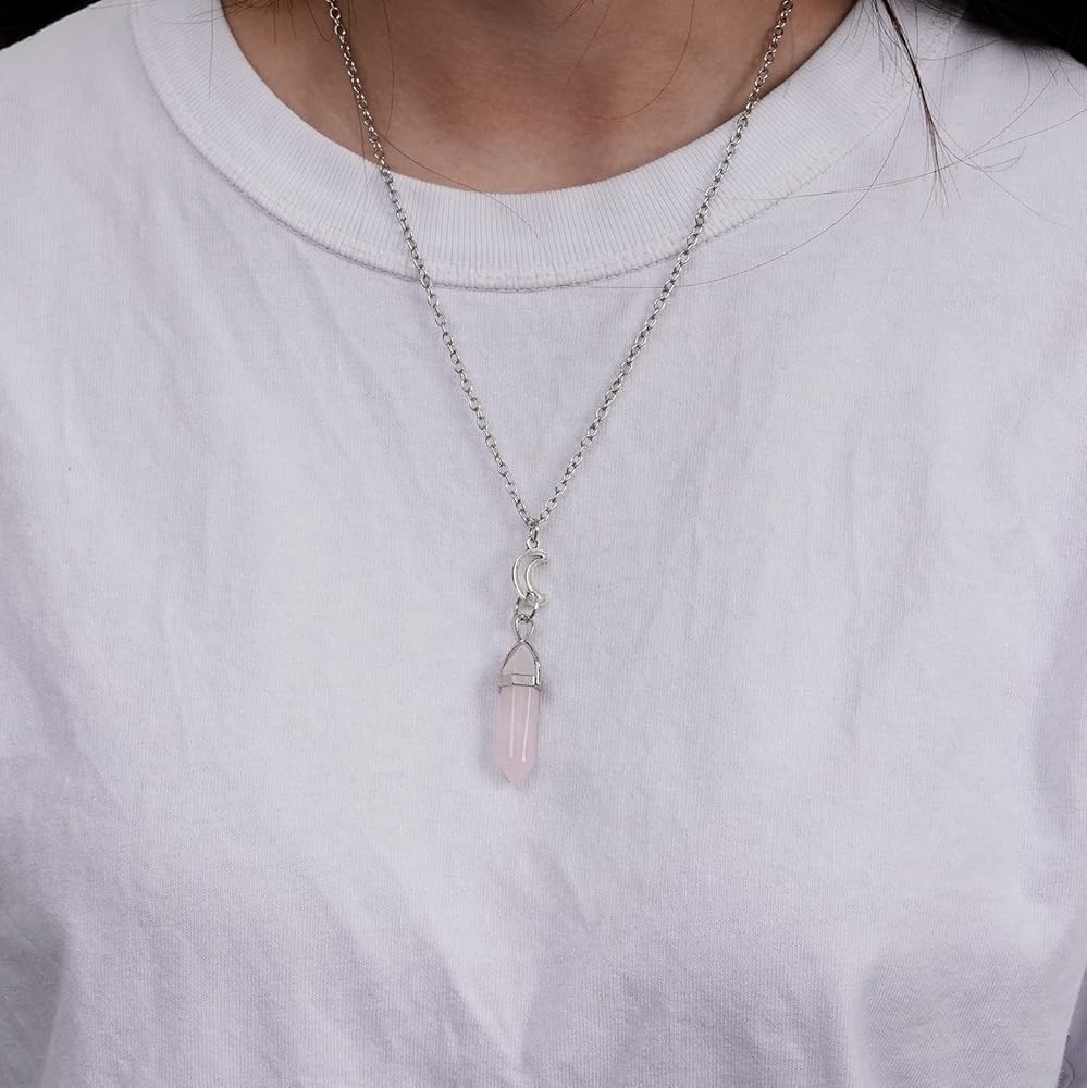 Healing Crystal: This necklace sets contains 2pcs well-crafted hexagonal prism shape Amethyst and Rose Quartz Crystal Point Pendant. Amethyst can enhance the energy of the crown chakra, filling you with wisdom and clarity of thought. Rose Quartz can enhance the energy of the heart chakra, makes feel and accept the love from people around