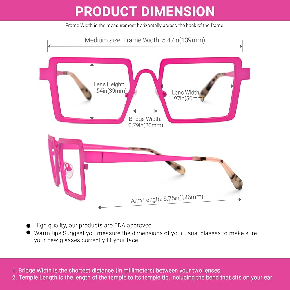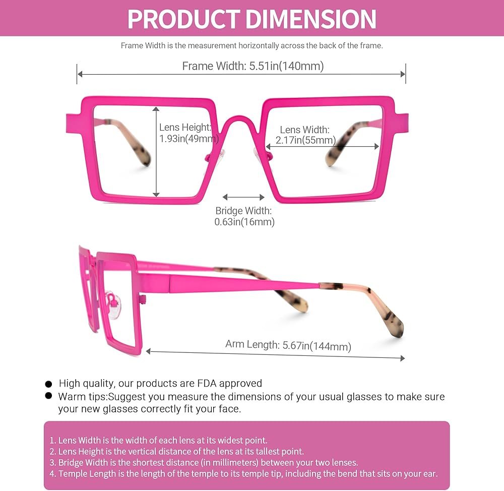 ❤ These stylish rectangle frame glasses are made of high quality, light and nice, beautiful colors, durable, and comfortable to wear