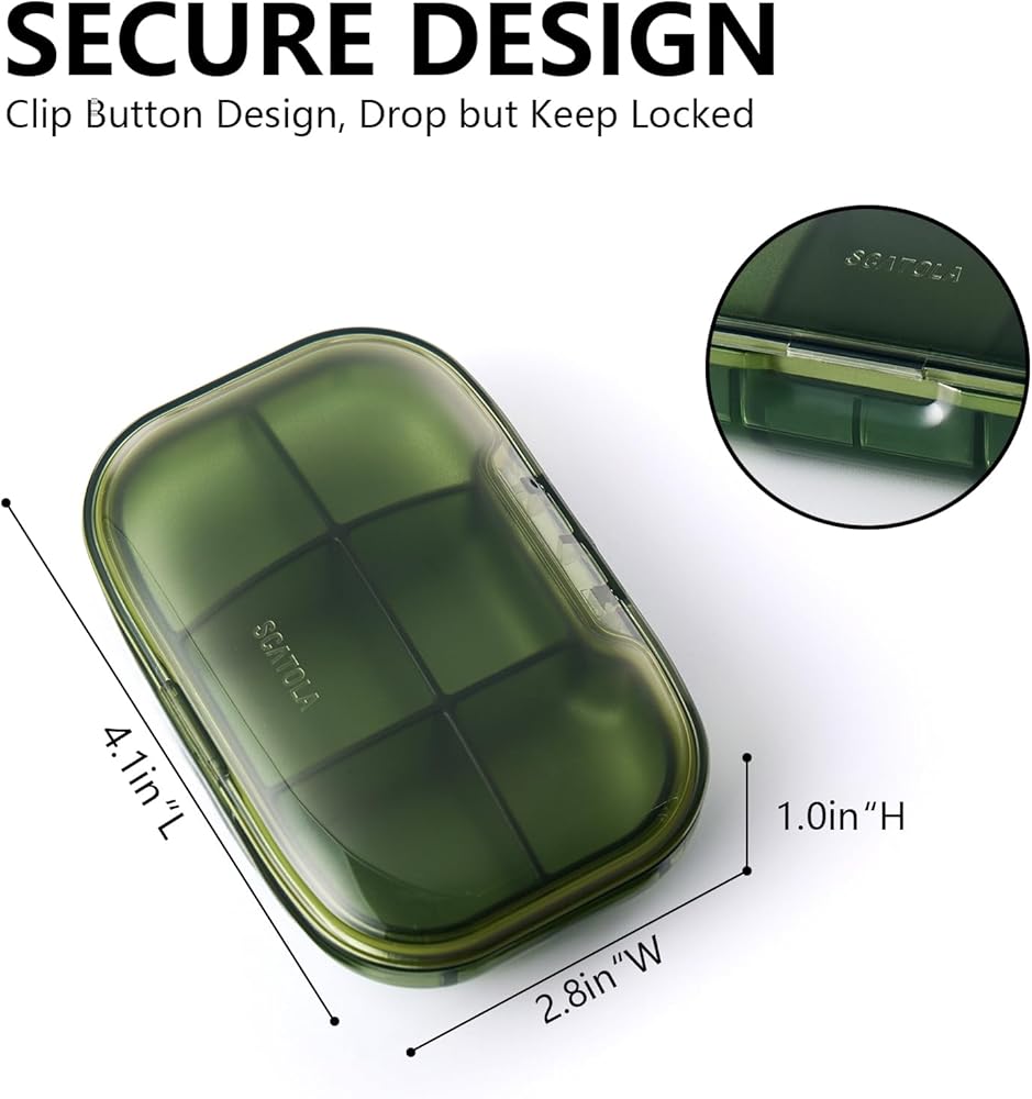 MOISTURE PROOF & SECURE DESIGN: Our small pill box is superior sealing with the thickened silicone ring surrounded, which can keep your travel pill case closed tightly, and keeps your pills dry for long time. Clip button design makes you easy to open and close, keeps locked even it fallen down and make sure pills never lost.