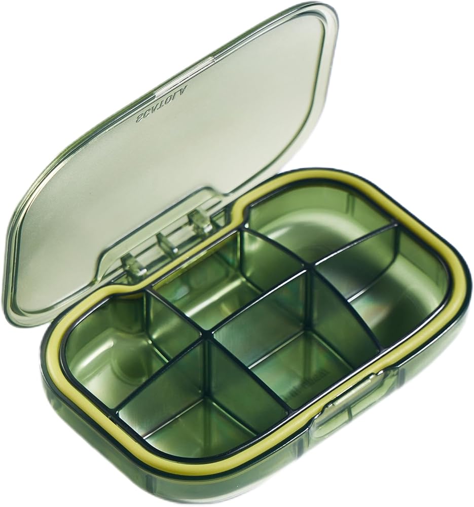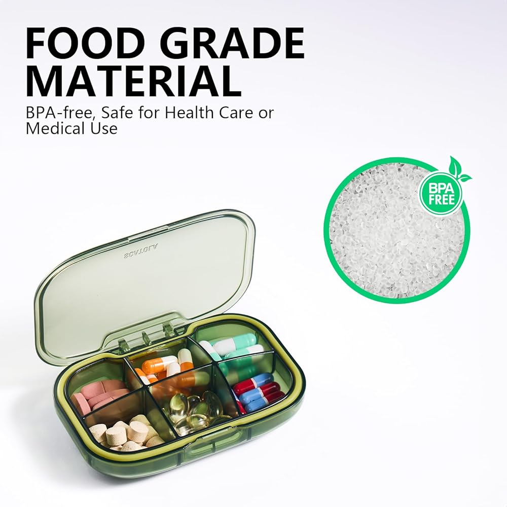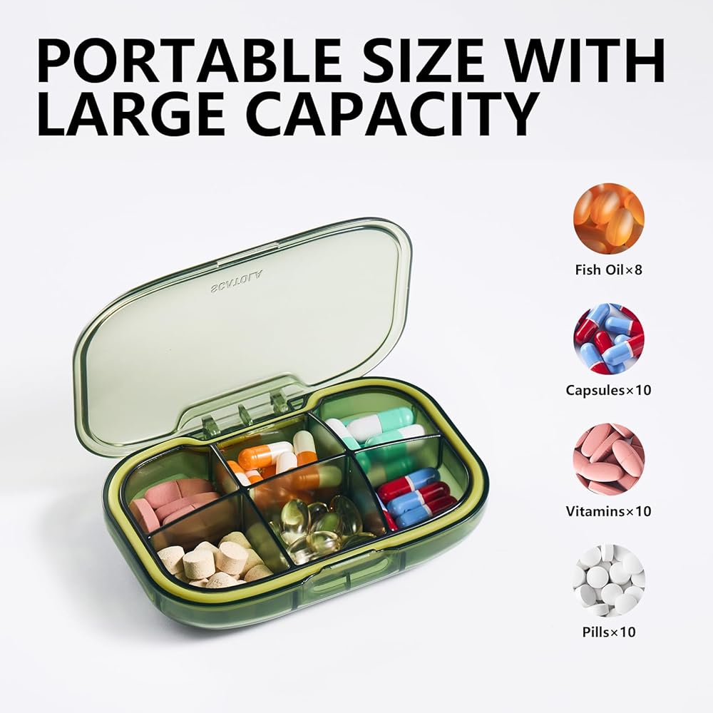 Sukuos 6 Compartments Travel Pill Organizer, Portable Daily Pill Box for Purse Pocket, Easy to Open Small Pill Case for Medicine, Fish Oil, Vitamin, Supplement
