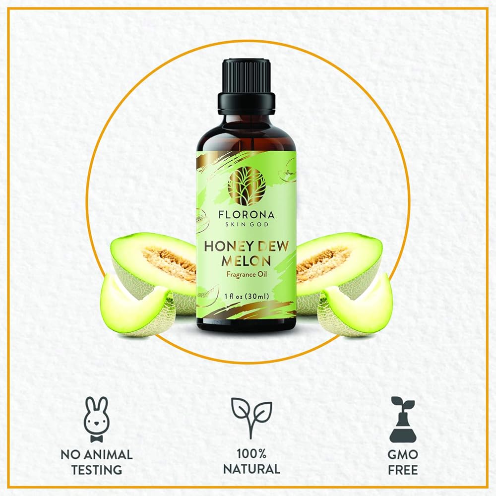 ✅RECOMMENDED USE- Florona Honey Dew Melon fragrance oil is great for soap making, creating your own candles, air freshener spray, skin and hair care formulations, cleaning products, for use in home aroma diffusers, scented dryer sheets, to freshen a drawer, potpourri, freshen carpets, massage/body oil, sugar scrubs, bath bombs, perfume, cologne and much more. It is best suited for gift purposes as well.
