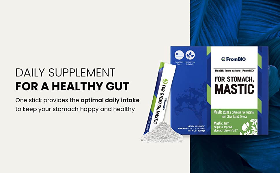 HEALTHY GUT, HAPPY LIFE - It helps to prevent the excessive gastric acid and protects the stomach from a lot of issues. One stick of FromBIO's Mastic Gum a day will ensure significant improvement in gut health such as which comes from stress or irregular eating habits. With comfortable stomach, we can spend a day a little more lively and energetic.