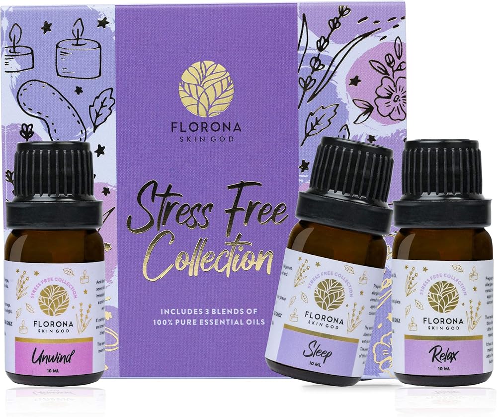 Florona Stress Free Premium Quality Oil Gift Set of 3-1 fl oz (10 ml x 3) for Diffuser Aromatherapy - Sleep, Relax & Unwind, Essential Oil Set for Diffuser