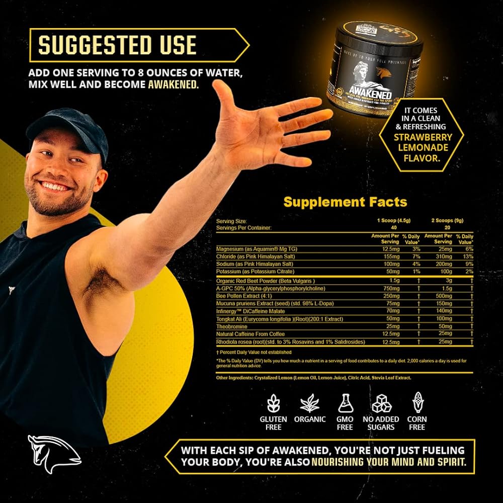 🐝From the creators of Spartan bee bread chewables, this natural pre workout powder has bee pollen granules extract used to make Awakened all natural pre workout potent and powerful.