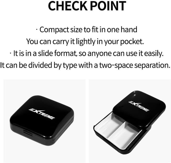 EXTREME 1 Pack 2 Compartment Portable Plastic Pill Box, Travel Pill Organizer for Pocket Purse, Daily Portable Medicine Vitamin Box, Supplement Box, Slide Type