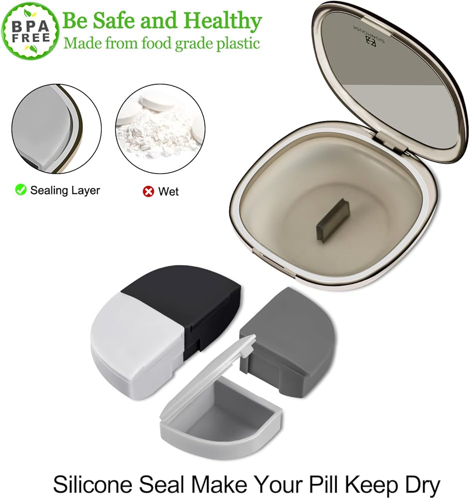 The Daily Pill Organizer is Cute and Moisture-proof: The thick silicone ring is embedded around the pill case, allowing the travel pill case and lid to fit snugly, preventing dust and moisture from entering to keeping the pills clean and moisture-free.