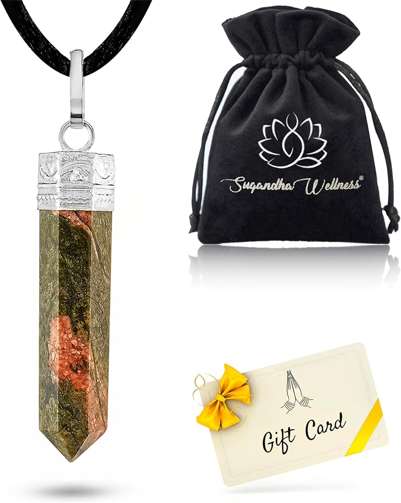 Unakite Necklace – Natural Healing Crystal Pendant for Emotional Balance, Growth & Grounding | Raw Stone Jewelry for Men & Women | Spiritual Chakra Necklace for Meditation, Reiki & Energy Work