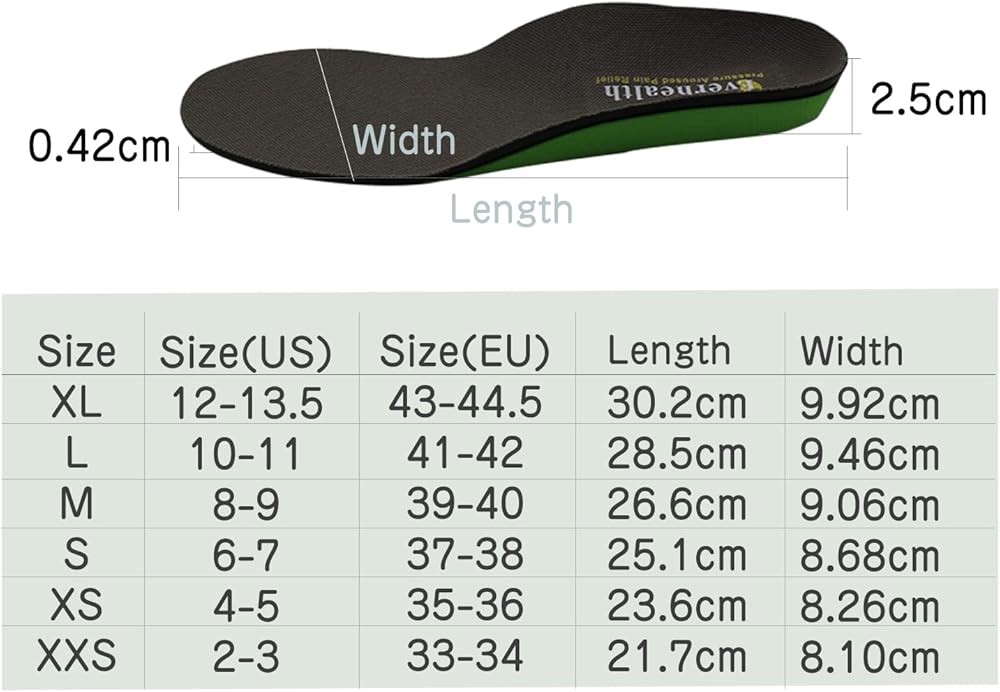 ✔ERGONOMIC LASTING COMFORT: The perfect curve of the ergonomic full length insole is designed in accordance with the foot structure, ergonomic and biomechanical, and out of doctor's data from patients and ergonomic knowledge. Orthotics are crafted from premium medical grade EVA foam, arch support improves foot and leg alignment, enhances comfort, and helps ease stress and uncomfortable caused by flat feet (pronation), arthritis, good for plantar fasciitis, heel pain/spurs, Achilles Tendonitis.