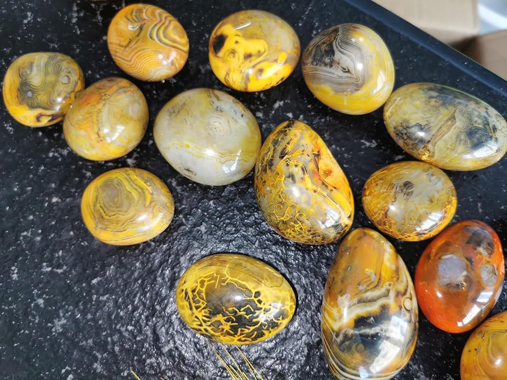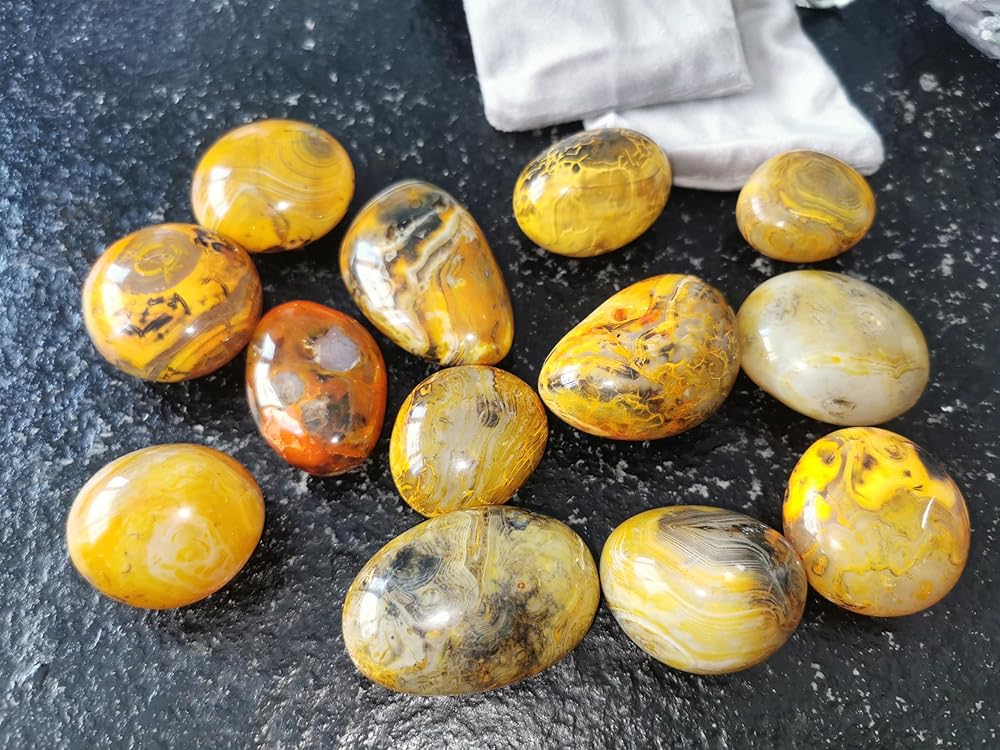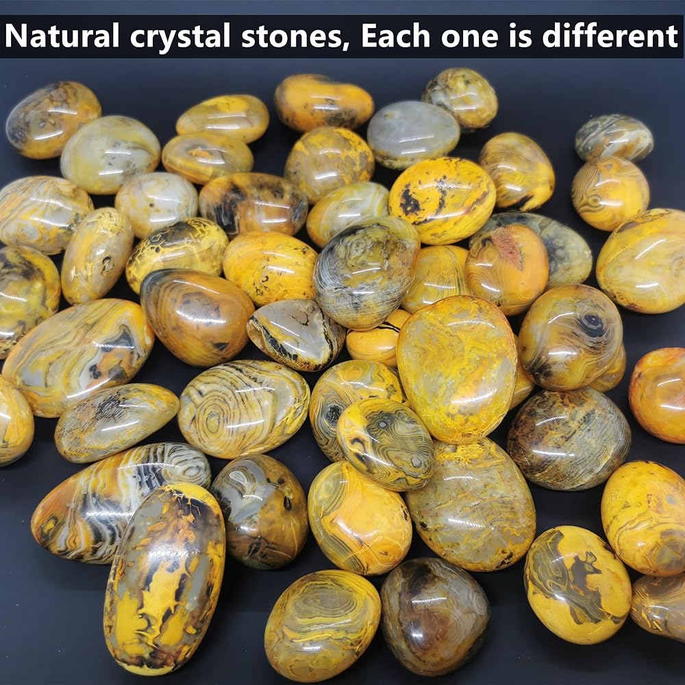 👏SIZE: Our stones weigh 1.8 ounces/piece, approx.: 1.9x1.1" Because the size and weight of the yellow stripe color are different. These transparent crystal stones are perfect for placing in your hands, bag, pocket, table, and anywhere you want them to be.