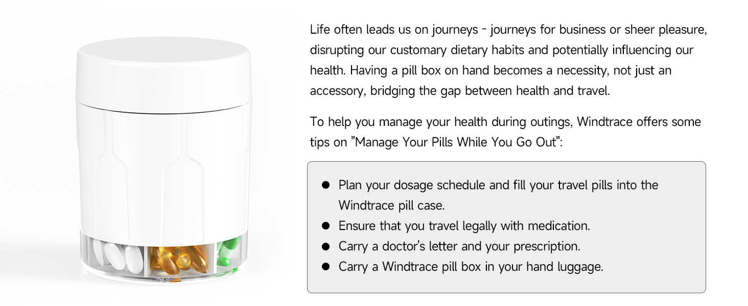 Use High-quality Materials: Our pill container is made of BPA-free food-grade material, eenvironmentally friendly. And the solid quality can withstand the test of time, please feel free to manage your pills with pill dispenser.