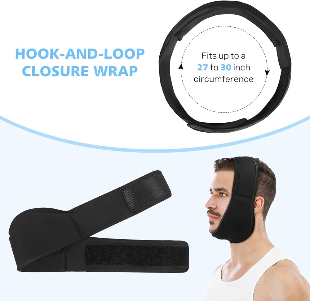 ✔One Size Fits Most- With adjustable Velcro strap, the face ice pack is fit for most head size and can be easily adjusted from 27" to 30'' for the compression you want. The v-shape curve design makes it contour to your face perfectly.