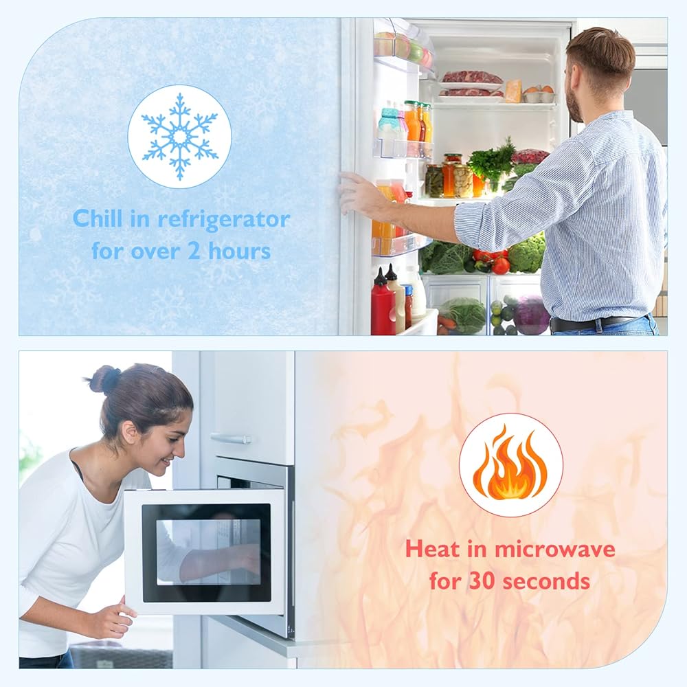✔Soft & Comfortable: Made with soft non-toxic solid gel fillings and smooth fabric with double sealed edges, the cold and hot compress is leak-proof, skin-friendly and easy to wear. Can be worn on both sides.