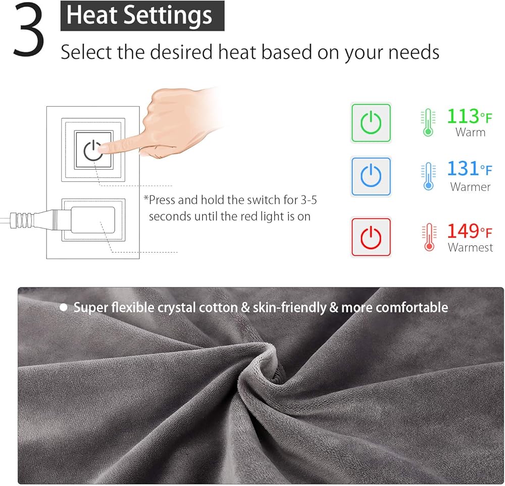 [Attention & Warranty ]: Please pay attention to the use of heating blankets, do not use for a long time to avoid burns. We provide this large heating blanket with 12-month warranty and 24/7 customer service. If you have any question or unhappy with your purchase, please contact us immediately, HASSLE-FREE refund or replacement.