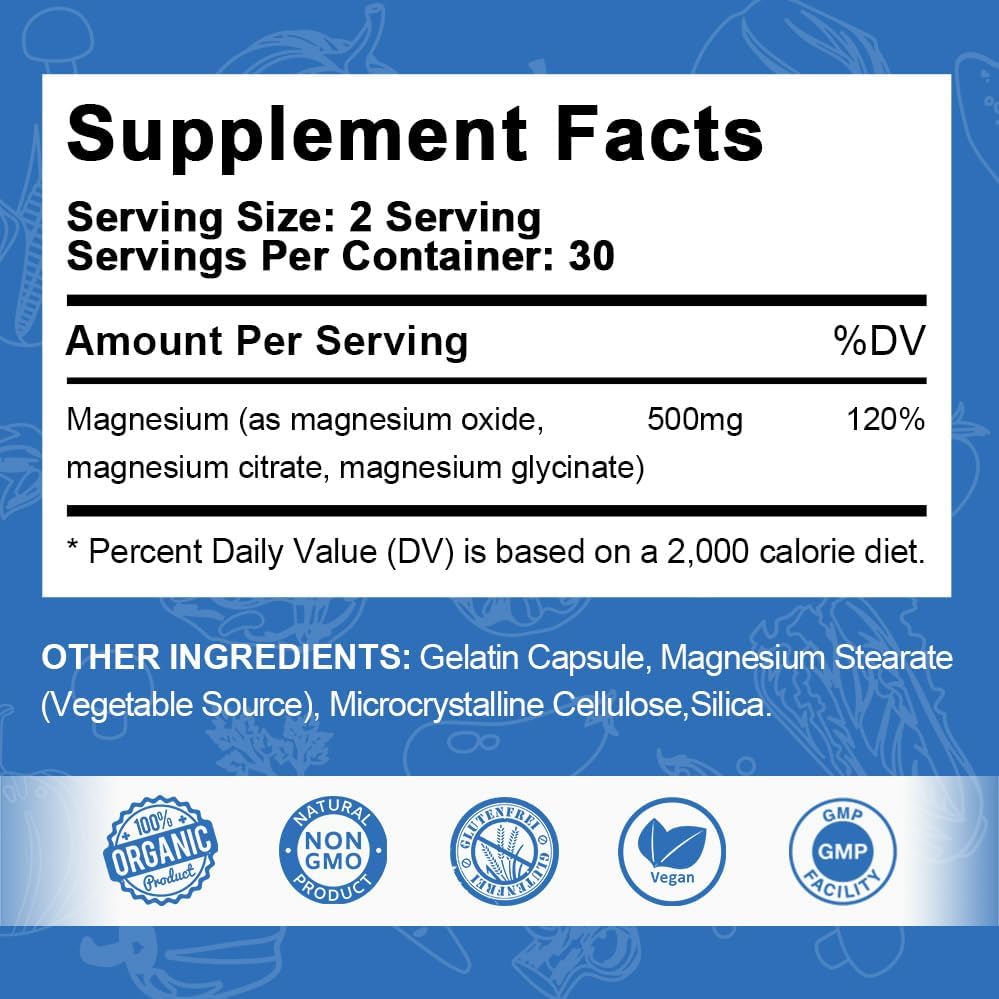 Advanced Triple Magnesium Complex For Women And Men: Our Pure Magnesium Supplement that contains Magnesium Glycinate, Magnesium Citrate, Magnesium Oxide. 3-in-1 Magnesium achieved high absorption and high bioavailability, meet daily magnesium needs.