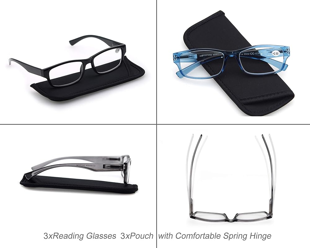 ☀ محتويات العبوة: مجموعة من اللون الكلاسيكي - أسود/رمادي/أزرق/تورتي+ مجموعة من نظارات القراءة + حقيبة ناعمة + قطعة قماش واحدة بسعر منخفض تعطيك قيمة رائعة لمنتج عالي الجودة