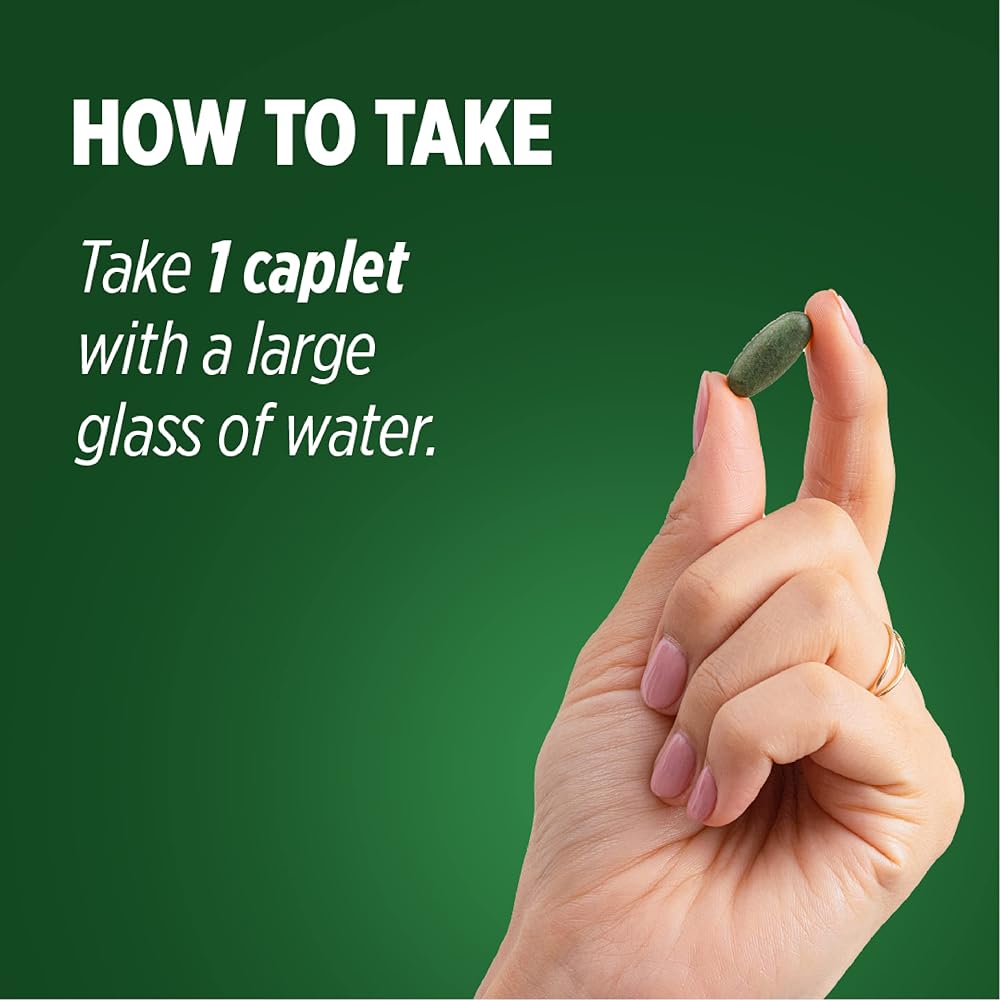 - Take one (1) caplet with food once or twice daily