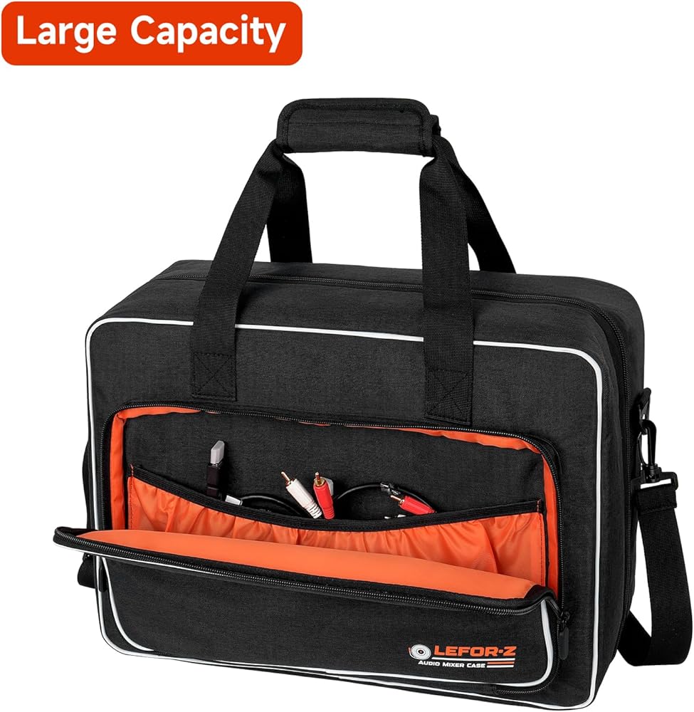 【Large Capacity】This podcast mixer protective storage bag comes with 1 removable divider which can provide extra space for accessories according to the size of your mixer.3 specially designed pockets for microphones,1 zipper mesh pocket and front pocket provide ample space for your cables,chargers and other dj accessories.