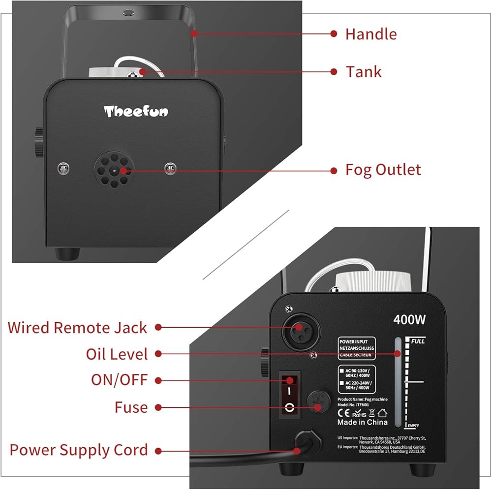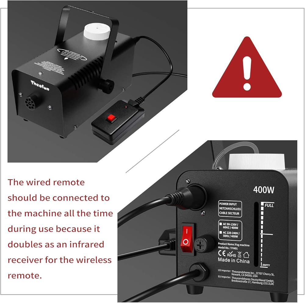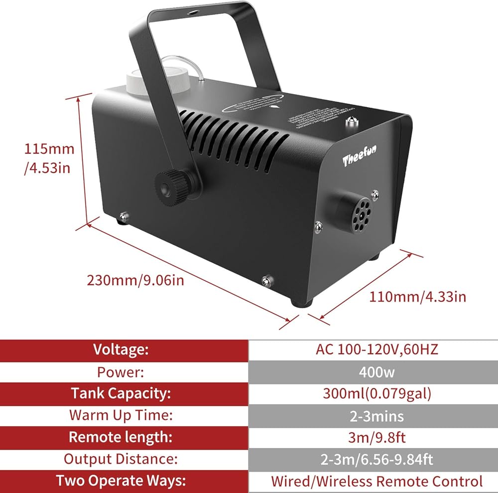 ♥【Energy Saving and Non-toxic】: Add professional fog fluid into the tank, then it can produce non-toxic fog continually via pressing the red button on wired console when you need.