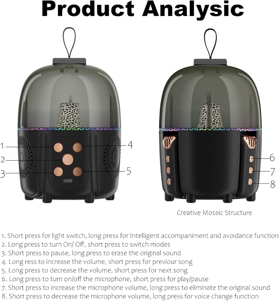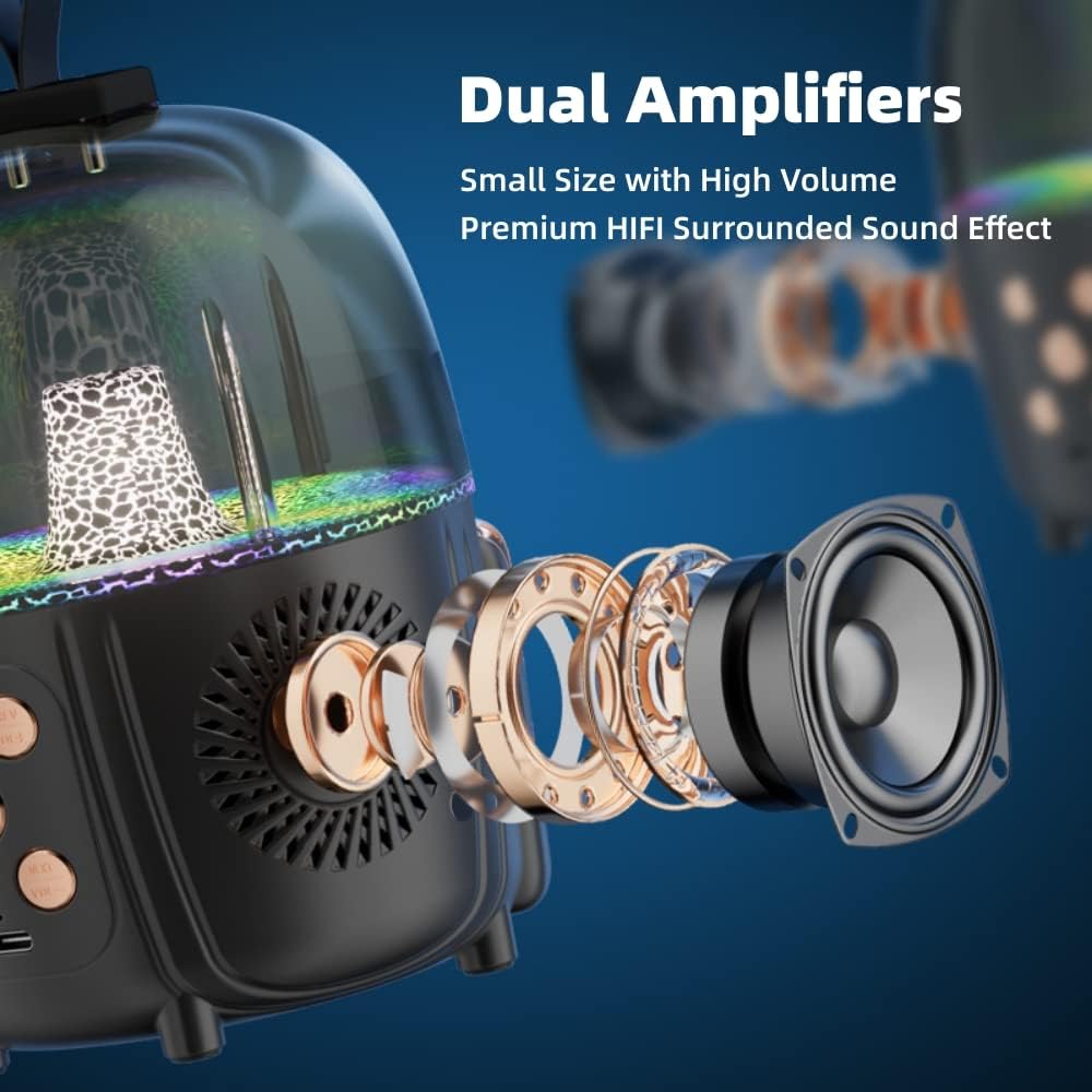 ♪Two Wireless Microphones: Featuring two wireless microphones, this mini karaoke Machine allows kids to sing duets and perform alongside their friends. The wireless microphones ensure that there are no messy wires to deal with, giving kids the freedom to move around and perform to their heart's content.