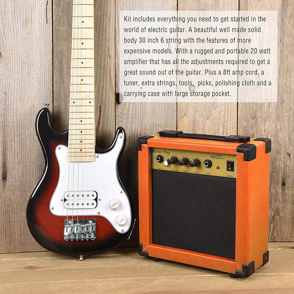 DisplayGifts 42" Electric Guitar Display Case Cabinet Shadow Box with Guitar Hanger Stand, Lockable UV Protection Red Color Felt interior with Black Frame