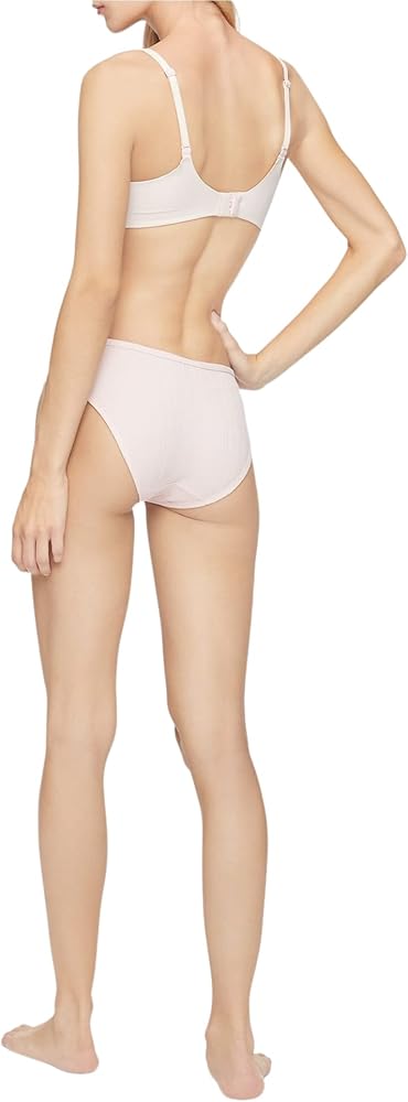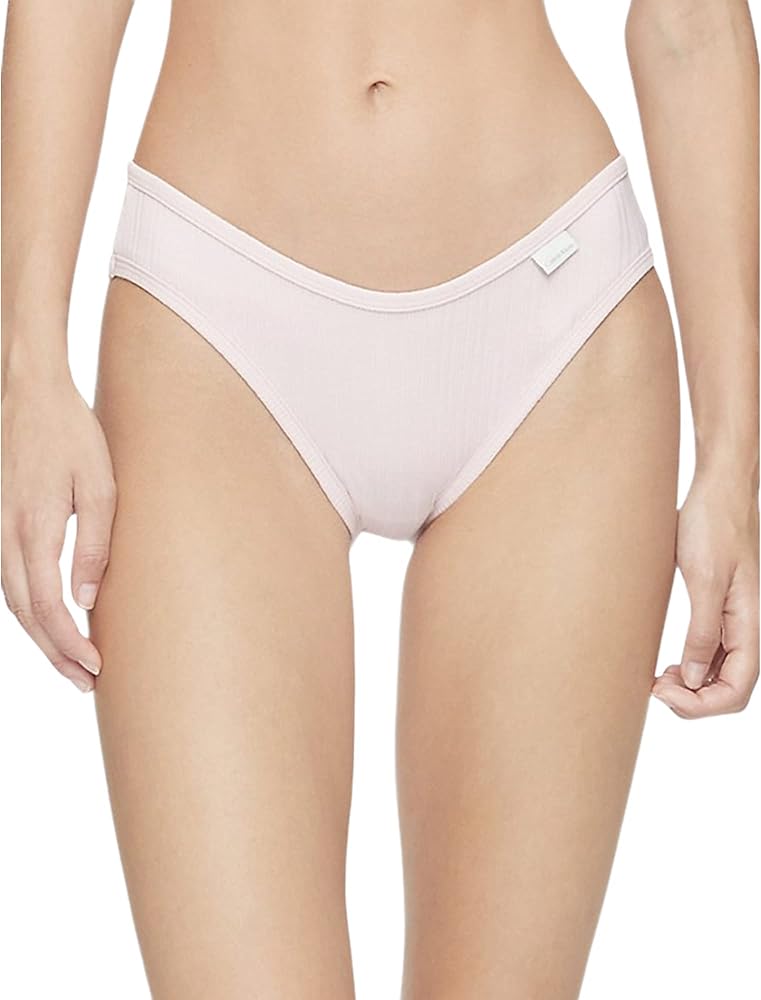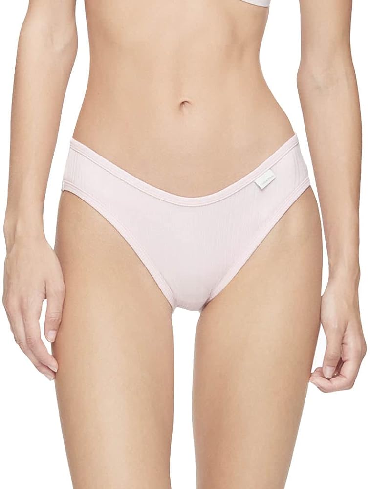 Get a flattering fit with the softest possible fabric Bikini style panty Ribbed, cotton blend fabric Stretch material High legs V-front shaping Mid to low rise waist Moderate rear coverage The Calvin Klein Ribbed bikini is a perfect choice for every day.