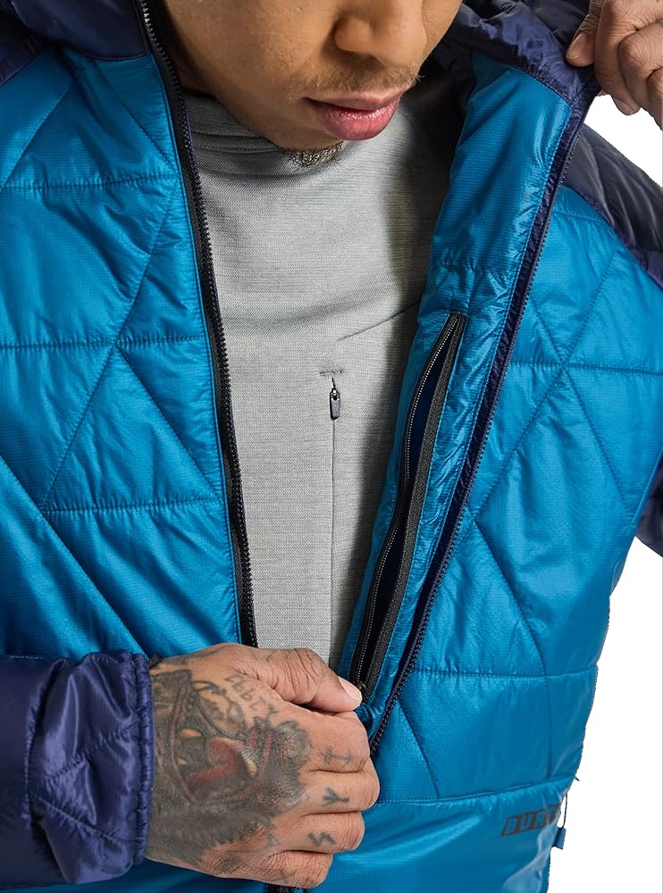 The men's Burton Versatile Heat Hooded Synthetic Insulated Jacket is that versatile puffy that you can grab for hikes, walks, and travel. Synthetic fill mirrors the loft and warmth of down while being durable and easy to care for. It layers under a shell and resists wind and snow for wear on its own. Mesh-lined vents let you regulate your temp, and it stuffs down into a pocket for easy stowing in your pack.