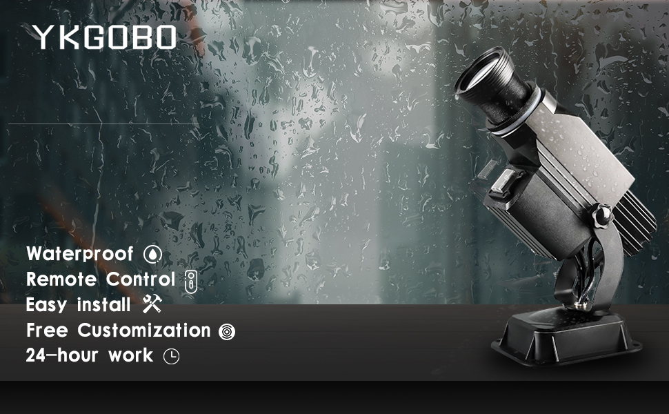 YKGOBO 30W LED Logo GOBO Projector Image Rotation IP65 Waterproof with Manual Zoom DJ Effect Light Custom Gobos for Hotel Car Wash Company Restaurant Store Wedding Advertising Outdoor Use