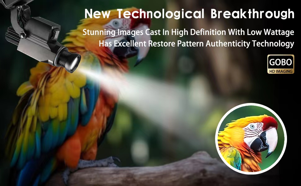 Protection Performance-This GOBO projector is made of sturdy aluminum, with excellent heat dissipation performance, and with waterproof function, it can be used outdoors for a long time. EASY INSTALLATION - A wall, floors, and ceiling for a projection range up to 34ft in dark or dim areas, up to 46ft in bright areas