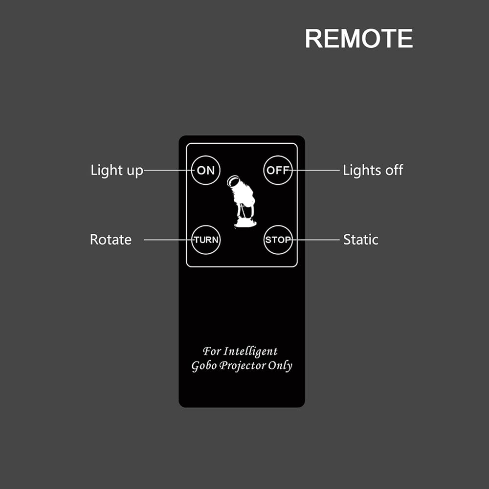 Remote Control-Comes with a remote control to set pattern stationary/rotating for attractive projection. Easy to control light on/off no matter projector installed on ceiling, wall or outdoor.