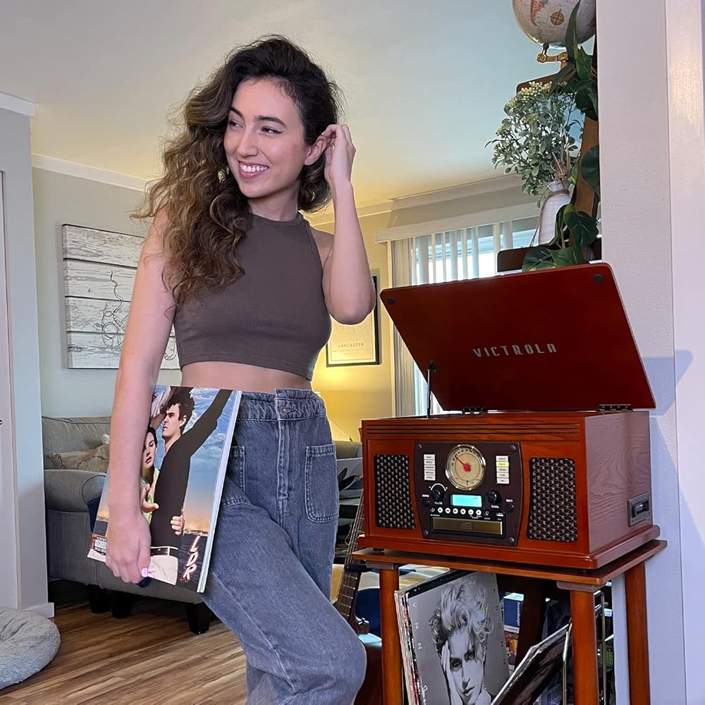 Create a classic centerpiece for your living room with the Victrola wooden stand with record holder. With its elegant real wood construction, it's the perfect complement for all Victrola wooden music centers.