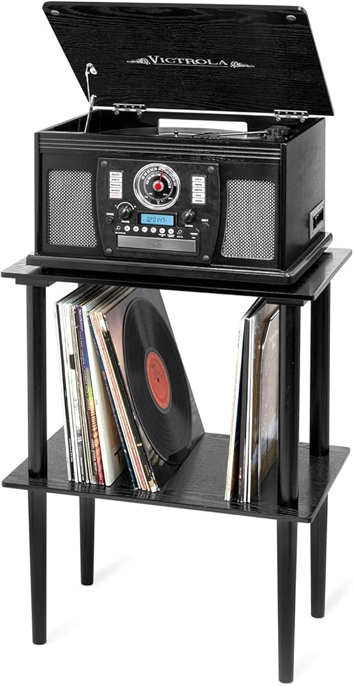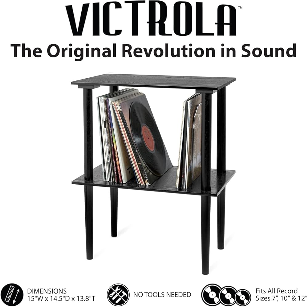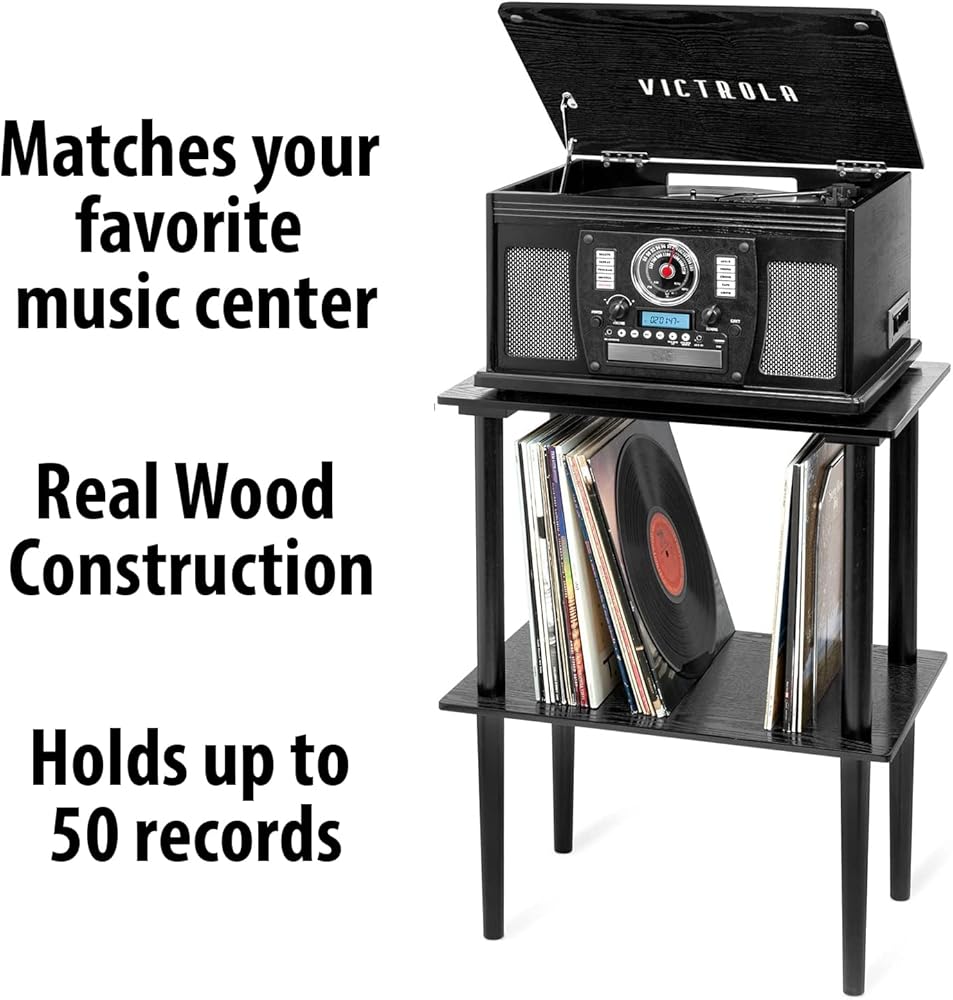 Victrola Wooden Record Stand – Companion Piece for Victrola Music Centre, Holds Over 50 Vinyl Records, Elegant Real Wood Construction, No-Tool Assembly (Black)