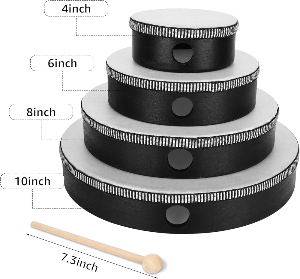 1×4" Hand Drum Set for Adults 1×6" Hand Drum Set for Adults 1×8" Hand Drum Set for Adults 1×10" Hand Drum Set for Adults 4×Drum Stick- 19cm