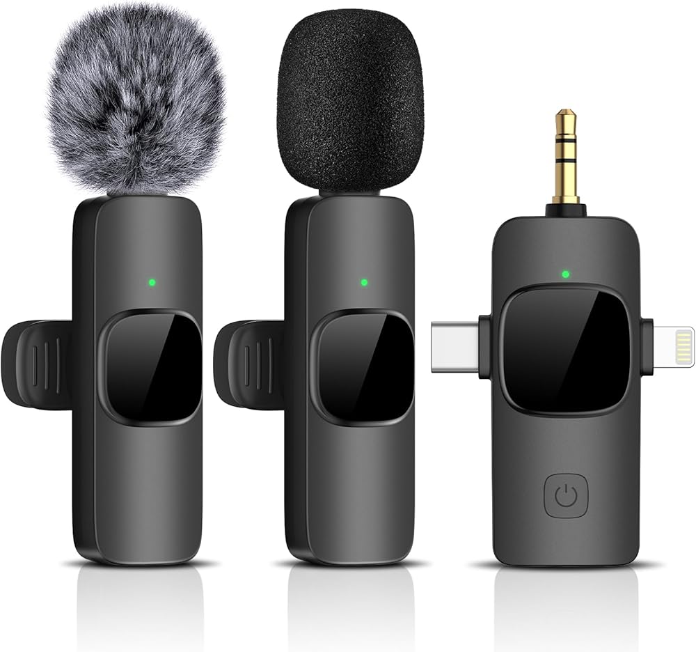 Wireless Lavalier Microphone for iPhone - Android Phone/Camera/Computer/Laptop, Dual Lapel Mic with USB-C/3.5mm/USB Plug for Video Recording, Vlog, YouTube, TikTok, Auto Sync and Noise Reduction1