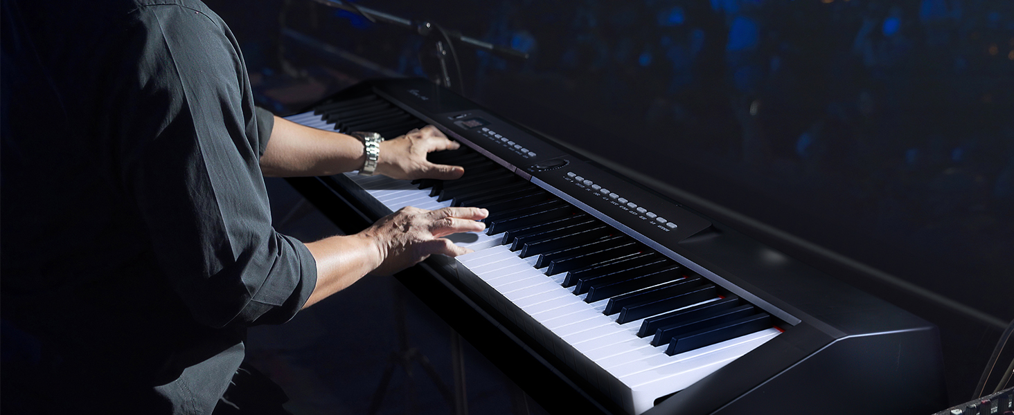 BLUETOOTH & EXCELLENT TEACHING PIANO: Rosen 88 keys piano keyboard is powerful, especially suitable for teaching. It has a dual keyboard function that can make a teaching activity side by side. With Bluetooth MIDI function, you can connect this piano with the external device/software/APP. So that the beginner can learn to play by the teaching APP.