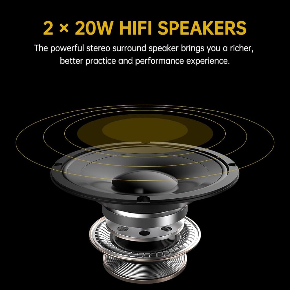 PREMIUM SOUNDS: 200 rhythms, 200 sounds, 70 demo songs, and two built in 20W speakers that built three-dimensional surround sound, deliver crystal-clear, room-filling sound, so that you can immerse yourself in the music atmosphere.