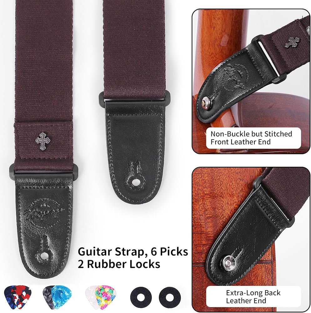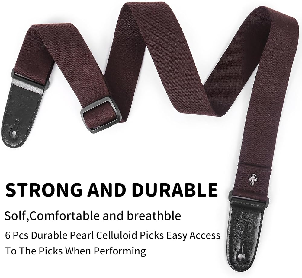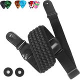 🎸【Abundant Accessories】Comes with 2 rubber rings and 6 guitar picks to meet the different needs of guitar lovers, allowing you to buy this guitar strap and purchase other products
