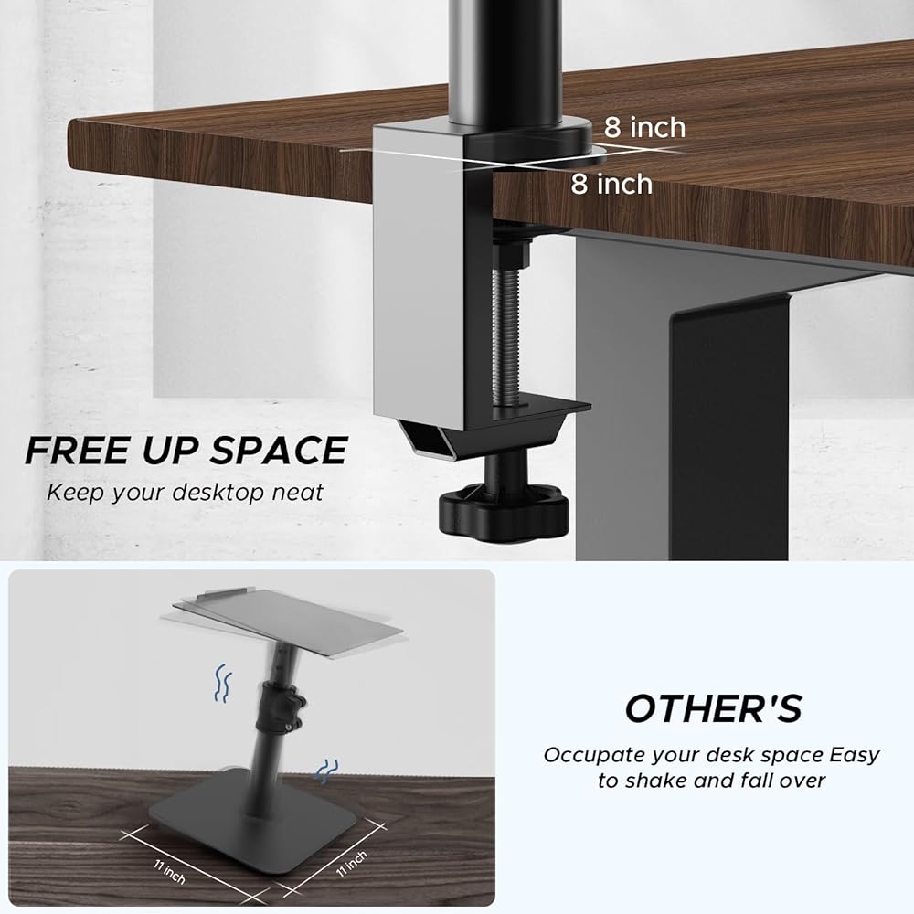 FREE UP SPACE - Compared with the traditional speaker stand, the clamp on desktop speaker stand only occupies 8"*8", which greatly frees up space on the desktop and keeps your desktop neat and tidy. The clip-on design allows the stand to "bite" the desktop tightly and not easily shake and fall over.