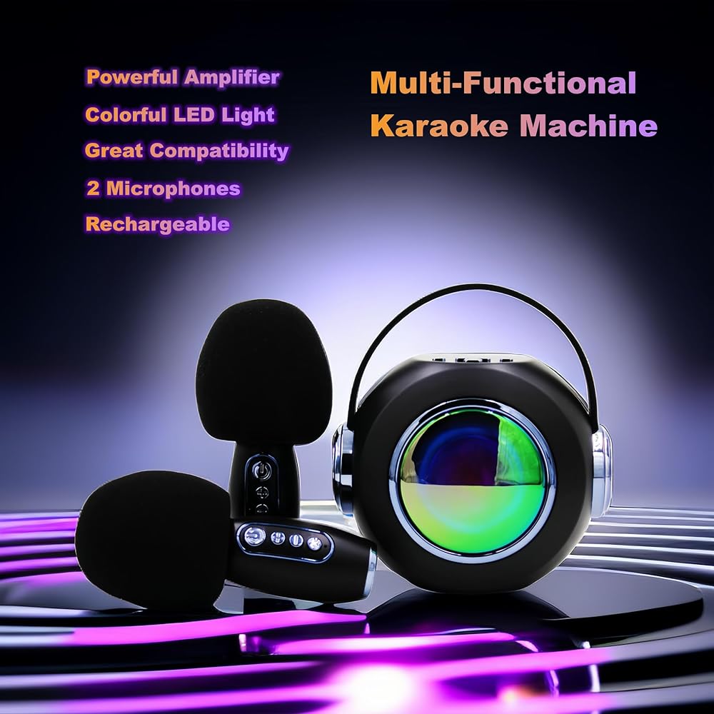 Kids Bluetooth Karaoke Machine with 2 Wireless Microphones, Portable Karaoke Speaker Music Player with Microphones for Kids and Adult Party Gift (Black)
