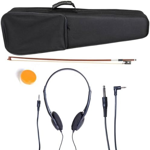 Includes: lightweight hard case, Brazil wood bow with unbleached genuine Mongolian horsehair, quality rosin cake, a bridge, aux cable, and headphones
