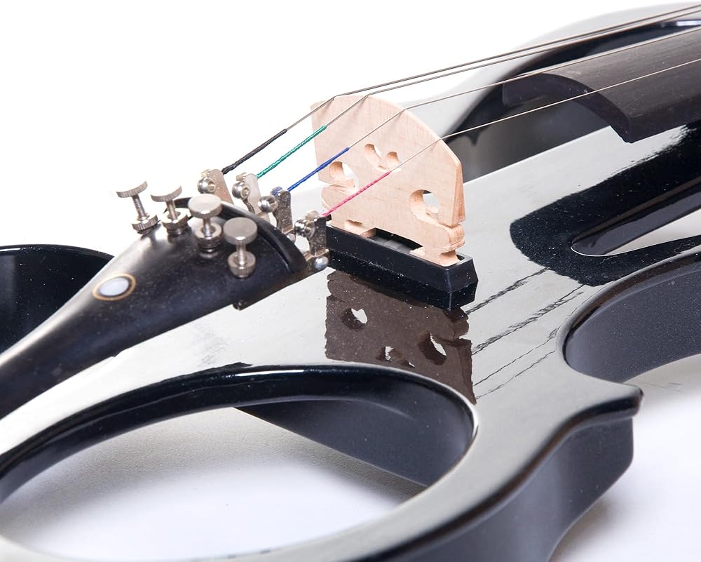 Whether you're practicing, recording in studio or performing on stage, the Cecilio electric violin outfit offers excellent functionality and style. It provides violinists of all levels with the ability to practice confidently without disturbing others. The outfit features a 1/8" output jack that allows you to connect to most guitar amps or PA systems (1/4" to 1/8" cable included), volume control that allow you to choose the ambience you want, headphone jack for practice and a line-in jack for practice with a background track. This violin package includes a well-padded lightweight hard case, a bow, rosin, bridge, pickup, aux cable, and headphones. Great for Student, Intermediate and Professional Violinist.