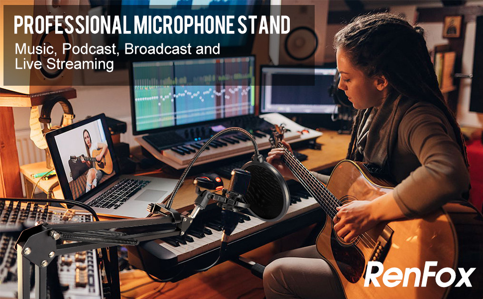 Microphone Stand, RenFox Adjustable Mic Stand Desk Suspension Scissor Arm Mic Boom Arm for Blue Yeti, Snowball & Other Mics for Professional Streaming, Voice-Over, Recording, Games