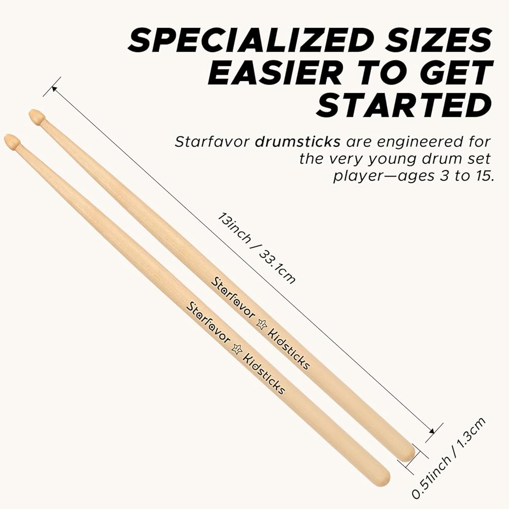 【Content And After-sales Service】Starfavor North American Maple Wood Kid Drum Sticks x 6, 12 months warranty If you have any questions, or you are dissatisfied with our drumsticks, please don't bother to contact us, We will definitely reply you within 24 hours and solve your problems in time.