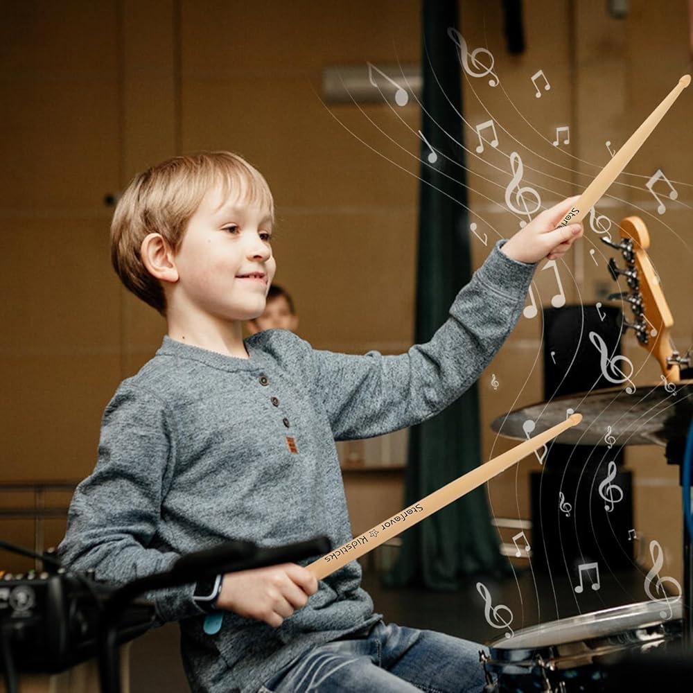 【Eye-Catching Drum Sticks】Starfavor kids drumsticks hava 3 energetic colors for you to choose, including blue, pink, and natural wood. Express yourself and your personality with drumstick colors to enhance the visual effect of your performance.