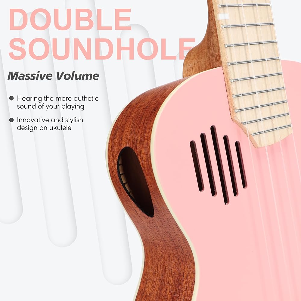 - 𝐒𝐢𝐝𝐞 𝐌𝐨𝐧𝐢𝐭𝐨𝐫 𝐒𝐨𝐮𝐧𝐝𝐡𝐨𝐥𝐞 - In addition to the main soundhole, PICKAPICK's Ukulele features a side monitor soundhole, offering a true and immersive sound experience.