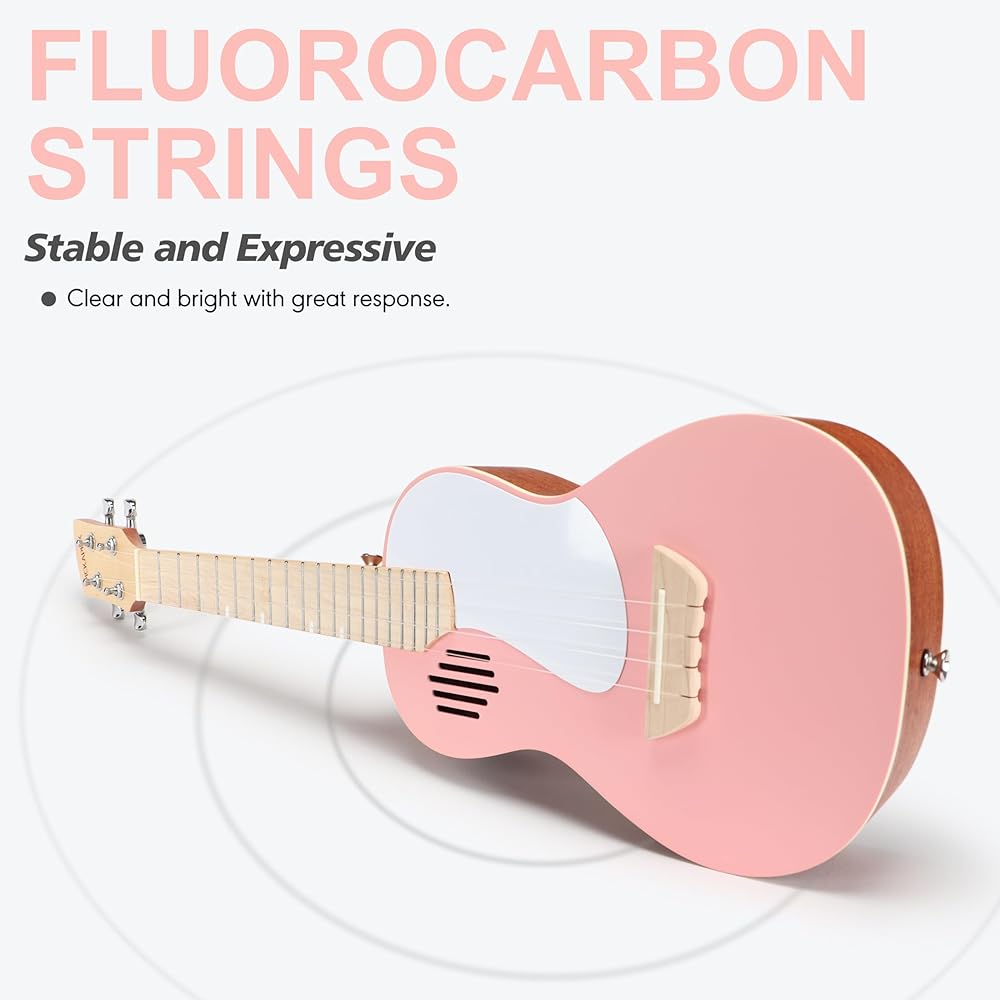 PICKAPICK UC21 is a unique ukulele with a captivating appearance and expert craftsmanship. Equipped with Aquila Supernylgut strings, U21 produces a sweet, mellow tone. Its side monitor sound hole and honeycomb sound hole provide an authentic and incomparable sound experience for both the player and the audience. The mango pickguard and stickers add a stylish and playful touch, making it stand out effortlessly. Available Colors: Cherry Pink, Sky Blue, Aqua Blue, Sunshine Yellow