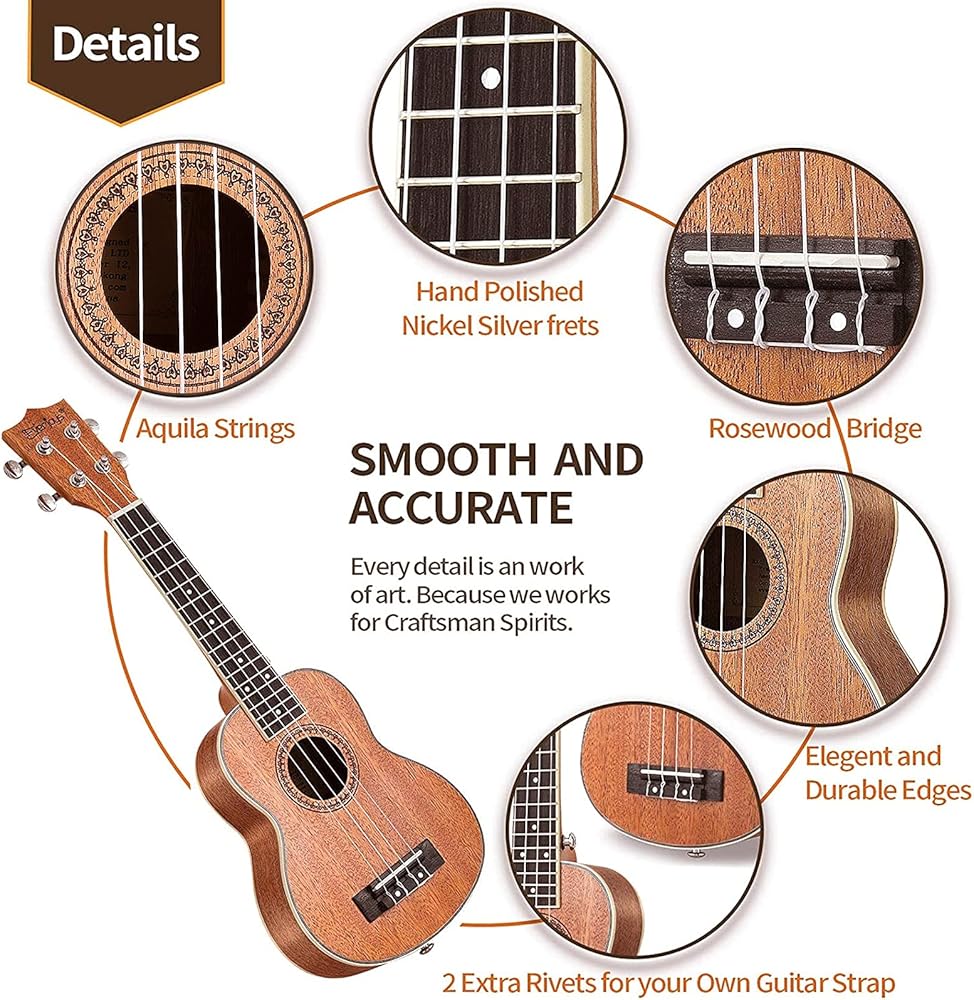 ✅ Selected Material: Traditional soprano ukulele with selected mahogany body and neck, rosewood fingerboard and bridge, four Aquila Strings Installed (Best Ukulele Strings, Made in Italy)