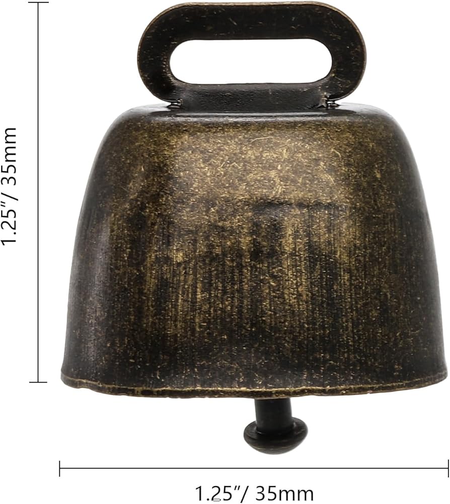 Coloch grazing copper cow bell measures 1.25 inches x 1.25 inches(35mmx35mm) as a whole. The compact size of the bells allows for easy attachment to the cow's collar or harness. The comprehensive pack ensures that farmers have enough bells to outfit their entire herd, providing a cost-effective solution for cow management.