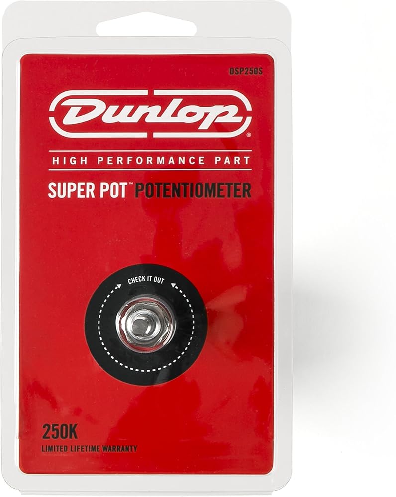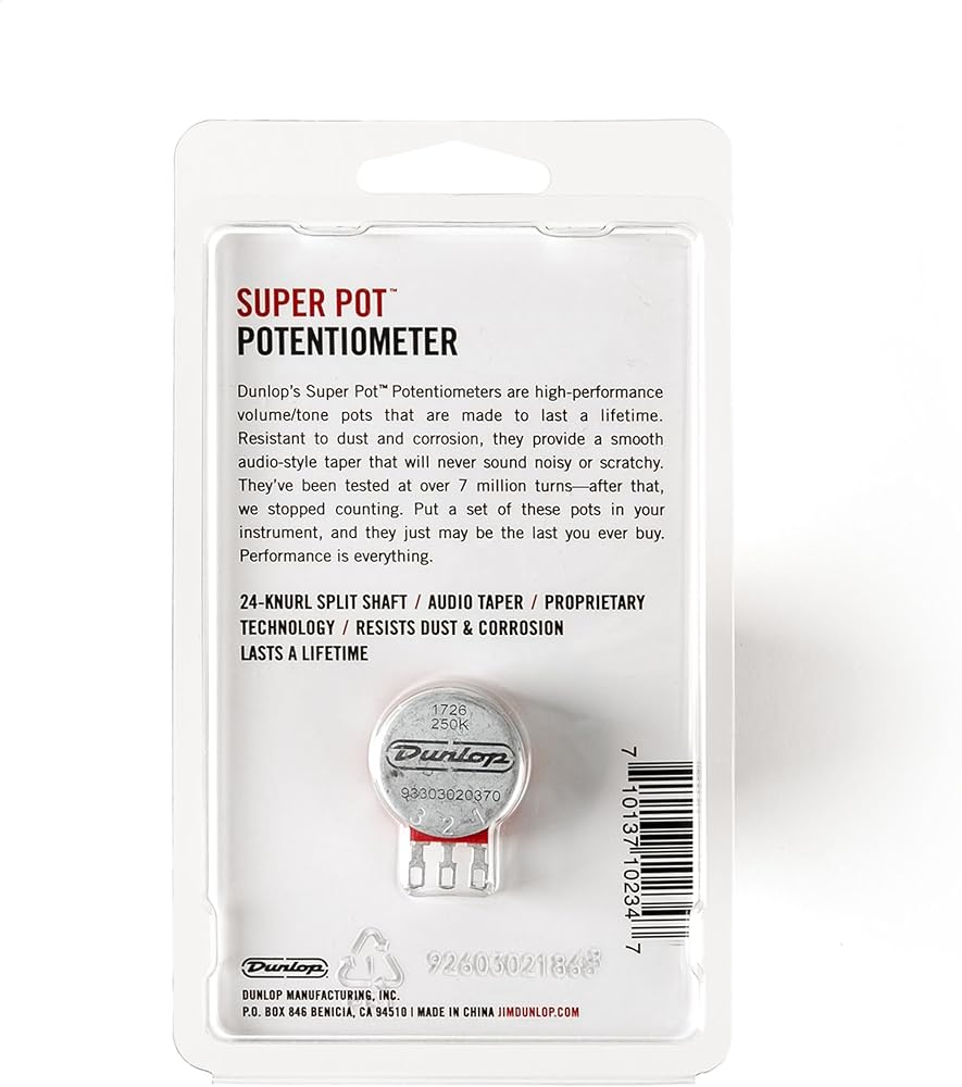 Dunlop's Super Pot Potentiometers are high-performance volume/tone pots that are made to last a lifetime. Resistant to dust and corrosion, they provide a smooth audio-style taper that will never sound noisy or scratchy. They've been tested at over 7 million turns-after that, we stopped counting. Put a set of these pots in your instrument, and they just may be the last you ever buy.
